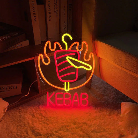 Kebab Neon Sign – LED Shawarma Restaurant Wall Art Light